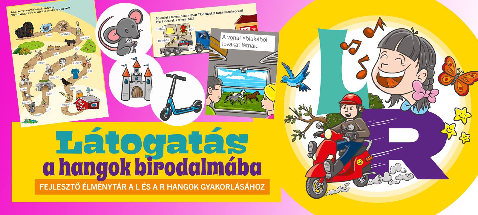 A Látogatás a hangok birodalmába végigvezeti a gyermekeket a L, R hangok gyakorlásának lépésein, miközben végig színes, lenyűgöző, képregényszerű oldalakon barangolhatnak. A képanyag gyakorlása során gazdagodik gyermeketek szókincse, ezáltal választékosabban tudja kifejezni gondolatait, így fogékonyabb lesz a világ megismerésére.Három oldalon megmozdulnak a szereplők és hangfelidéző játékokkal megnyílik a hangok birodalma! Az okostelefonunkkal csak be kell szkennelnünk a jelzett oldalon a képet és kezdődik a varázslat.